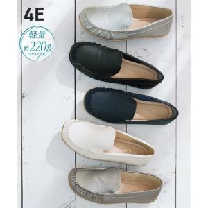 カジュアルシューズ 靴 4E 幅広 ゆったり ワイド 大きいサイズ レディース シンプル ぺたんこ らくちん モカシン ドライビングシューズ (アクアカルダ)