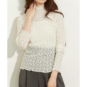 tシャツ ストレッチレースボトルネックトップス レディース