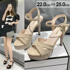 サンダル スエードチャンキーハイヒールサンダル レディース