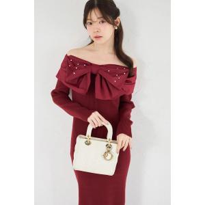 パールビジュー付きビックリボン切り替えリブニットワンピース tocco closet(トッコクローゼット)