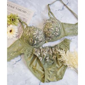 ブラジャー ショーツセット 「美谷間&丸胸を叶える!ナチュ盛りメイクブラ♪」上下セット/A~D/脇高ビックダスティフラワー刺繍