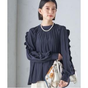 ブラウス シャツ 「残りわずか!」アシメ袖チュールブラウス|ウォッシャブル/オケージョン/抗ピリング/オフィスカジュアル/秋服/冬服 レディース