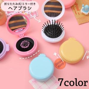 ヘアブラシ 折りたたみ ミラー付き 鏡 くし クシ 櫛 折り畳み コンパクト 円形 便利 携帯 外出 旅行 通勤 通学 デイリー 普段使い ヘアケア