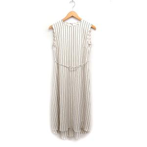ミラオーウェン Mila Owen ストライプ フレアワンピース ロング丈 ノースリーブ リボン 0 アイボリー /FT35 レディース