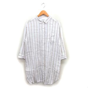 ミラオーウェン Mila Owen リネン ビッグシルエット シャツ ブラウス ストライプ 透け感 ステンカラー 長袖 F 白 ホワイト /NT4 レディース