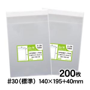 OPP袋 B6ワイド 5mm巾広 テープ付 200枚 30ミクロン厚(標準) 140×195+40mm 透明袋 国産