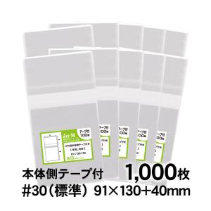 OPP袋 L判サイズ用 本体側テープ付 1000枚 30ミクロン厚(標準) 91×130+40mm 国産 透明袋