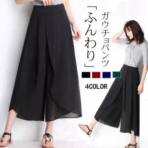 ワイドパンツ レディース 接触冷感 ふんわり シフォンワイドパンツ