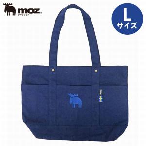 moz 帆布トートバッグ キャンバス素材 Lサイズ ブルー ポケット付き レディース ショルダーバッグ 大きめ かわいい モズ ブランド