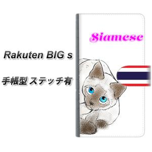 ラクテン ビッグ エス 手帳型 スマホケース 【ステッチタイプ】 YE838 シャム01 UV印刷 横開き