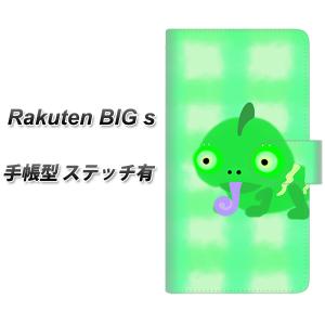 ラクテン ビッグ エス 手帳型 スマホケース 【ステッチタイプ】 YF827 かめれおん UV印刷 横開き