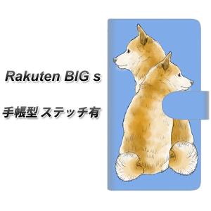 ラクテン ビッグ エス 手帳型 スマホケース 【ステッチタイプ】 YJ017 柴犬 青 UV印刷 横開き
