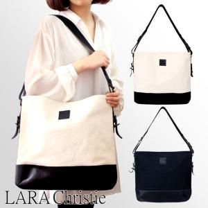 LARA Christie(ララクリスティー) メッセンジャー バッグ ドレスデンシリーズ ショルダー ブラック ホワイト 栃木レザー 倉敷産帆布