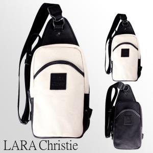 LARA Christie(ララクリスティー) ボディバッグ ドレスデンシリーズ ブラック ホワイト 栃木レザー 倉敷産帆布