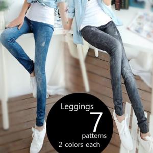 レギンス デニム風 レギパン デギンス レディース ボトムス ロングパンツ スキニー スリム 伸縮性 プリント クラッシュ ダメージ ウォッシュ フル