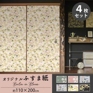 襖紙 ふすま紙 4枚組 リメイク 洋風 モダン 北欧 おしゃれ 張り替え 和モダン 花柄 110×200cm BERLIN in Bloom H-N-0