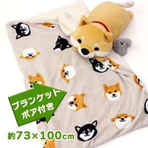 ブランケット おしゃれ ひざ掛け ボア付き 柴犬 厚手 暖かい 冬用 フランネル かわいい 犬 毛布 子供 レディース ギフト ベージュ しばともフェイス 905771
