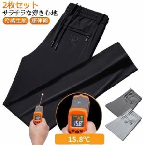 2枚セット アイスシルクパンツ 接触冷感 ロングパンツ メンズ イージーパンツ 冷感パンツ 薄手 ゴルフパンツ ウエストゴム ストレッチパンツ 伸縮性