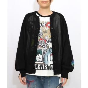 カーディガン 153610:スカラー箔プリント 接触冷感ニットカーディガン レディース