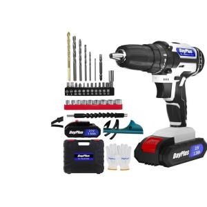 DayPlus 電動ドリルドライバー 21V 充電式 最大45N・m 25+1段階トルク調節 電池1個付属 コンパクト設計 LEDライト内蔵 初心者向け