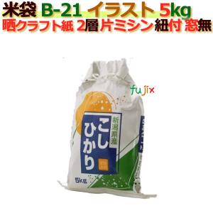 米袋 5kg 印刷 新潟こしひかり片ミシン 窓なし ひも付 晒クラフト袋 2層 200枚/ケース B-21