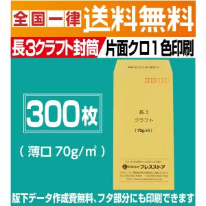 封筒印刷 長3クラフト封筒薄口 黒1色 300枚 版下作成費無料 フタ部分にも印刷可