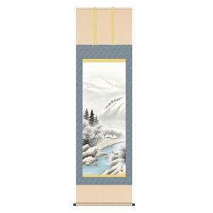 掛け軸 四季富士 冬掛け 伊藤渓山 富士山 富士厳寒 洛彩緞子本表装 尺5 桐箱入 1個 日本製 送料無料 名画複製 山水画 掛軸 冬飾り 冬景色 木 森 壁掛け