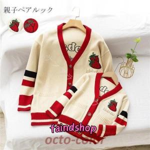 親子 ペアルック 秋 親子コーデ ニット イチゴ ストライプ 親子ペアルック 親子服 リンクコーデ ママ 娘 トップス 冬 親子おそろい 活動 プレゼント 赤い
