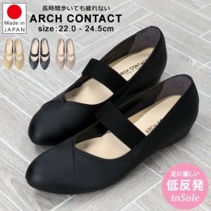 アーチコンタクト パンプス 痛くない 柔らかい 走れる 脱げない 歩きやすい 黒 日本製 ローヒール ウェッジソール ストラップ おしゃれ 疲れない 39198 靴