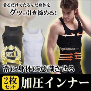 加圧シャツ メンズ 2枚セット 加圧インナー 加圧Tシャツ タンクトップ 姿勢 コンプレッションウェア 補正下着 インナー スパンデックス20%