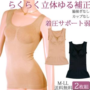 補正下着 ボディシェイパー 加圧インナー レディース ぽっこりお腹 ボディスーツ 成型 下着 タンクトップ 締め付けない セット 2枚 [M:1/1] 大きいサイズ LL L M