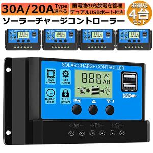 ソーラーチャージ コントローラー 4台セット 20A 30A 12V 24V 鉛蓄電池車バッテリー充電コントローラー USBポート 付き LCD液晶表