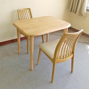 展示品 ダイニングテーブルセット 幅90cm 2人用 ラバーウッド無垢材 ナチュラル PVC張り アイボリー 快適生活EVO90