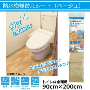 トイレマット 防水 床材 汚れ防止 リメイクシート 貼ってはがせる 賃貸 DIY 防水模様替えシート トイレ床全面用 ベージュ 90cm×200cm