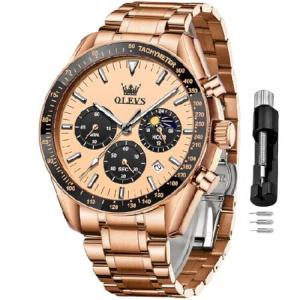 【並行輸入品】 OLEVS メンズウォッチ ファッション ミニマリスト クロノグラフ クォーツ アナログ メッシュ ステンレススチール 防水 発光 腕時計 男性用
