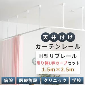 カーテンレール 天井付け 曲がる カーブレール 吊り下げ 吊り棒 病院用 病室 医療用 天井 H型リブレール L字セット 1510mm×2510mm H-N-0