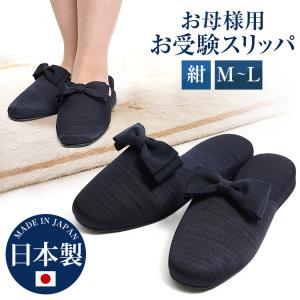 お受験スリッパ ママ 母 お受験 スリッパ 紺 M L 日本製 お受験用スリッパ レディース フォーマル リボン グログラン おしゃれ 面接 SP-03-NVY