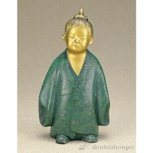 無我童子 青金色 中 ( 木札名入れ有料 退職祝い 定年 置物 玄関 受付 幸運 風水 高岡銅器 結婚 出産 内祝い 引き出物 金婚式 誕生日プレゼント 還暦祝い )