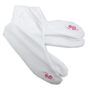 足袋 白 刺繍入り ストレッチ 桜さくら LL 25〜26cm 振袖 成人式 卒業式 袴 着物 女性用 大きいサイズ はかま
