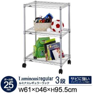 ラック スチールラック 幅60 3段 奥行46 ルミナス レギュラー ポール径 25mm スリム 業務用 キャスター付き 収納 棚 幅61×奥行46×高さ95.5cm NLH6090-3