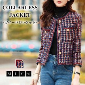 ノーカラー ツイード レディース ショート丈 卒業式 入学式 アウター 春秋冬 大人 着痩せ おしゃれ コーデ 韓国風