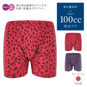 尿漏れパンツ 男性 日本製 失禁パンツ 綿100% コットン 前開き トランクス アニマル柄 ヒョウ柄 100cc M L LL レッド パープル 抗菌消臭 頻尿 吸水 おねしょ
