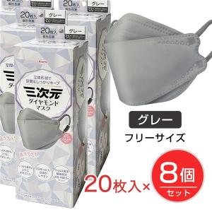 [12月のセール] 三次元ダイヤモンドマスク フリーサイズ グレー 20枚入×8個セット - 興和 [三次元マスク/立体マスク]