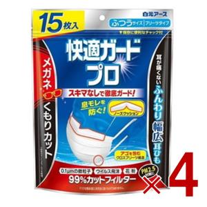 白元アース 快適ガードプロ プリーツタイプ ふつうサイズ 15枚入 4個