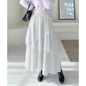 スカート 「低身長サイズ有」ドット柄ランダムティアードロングスカート 「大人可愛い 骨格ナチュラル」「再入荷」