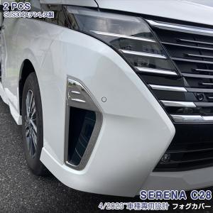 SALE 日産 新型 セレナ C28 2023年4月〜 フロントフォグカバー ステンレス製 鏡面 ドレスアップ カスタムパーツ SERENA 外装 2PCS 6282
