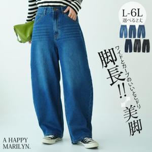 大きいサイズ レディース パンツ 選べる2丈 お腹周りに優しい 大人の美脚 バギー ストレート デニム ボトムス デニムパンツ LL 3L 4L 5L 6L 冬 A