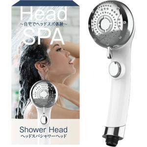 ヘッドスパ シャワーヘッド 6段階水流 ポイント マッサージ マイクロ ナノバブル G1/2規格 6モード バス用 手元止水 (ホワイト)