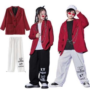 キッズダンス衣装 セットアップ ヒップホップ スーツ k-pop スーツセット 韓国 モノトーン ジャケット シャツ ワインレッド ロング丈 ボタン ベスト 白 黒 ソリ