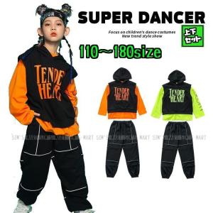 キッズダンス衣装 セットアップ ヒップホップ ファッション ダンス衣装 パーカー ズボン K-POP 韓国 オレンジ 黄緑 黒